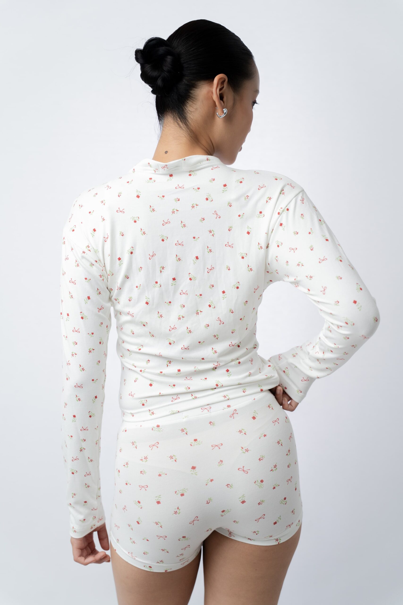 Plunge Neck Top & Boxer Shorts Cherry Print ₨ 2,070.0