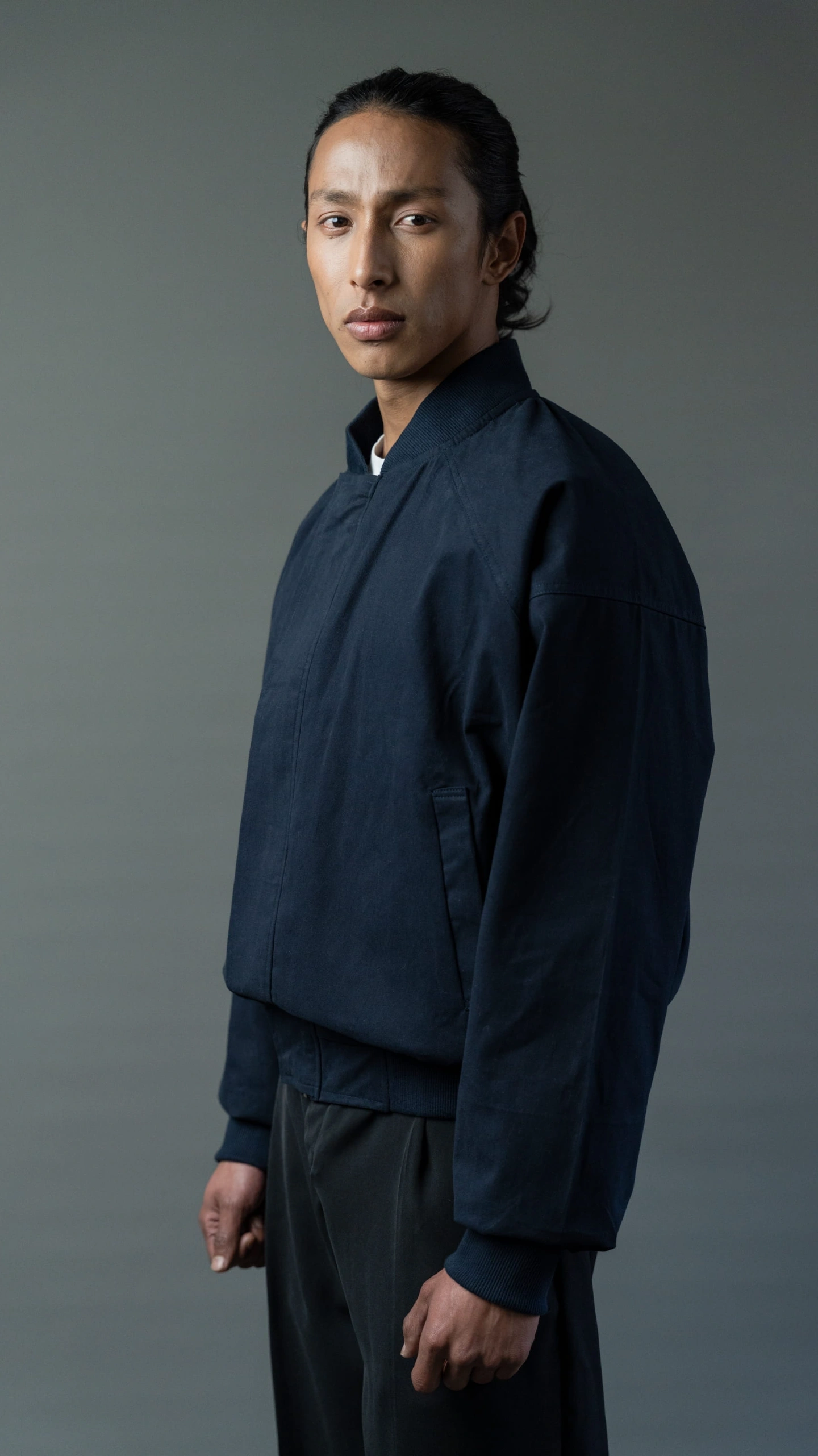 * Raglan sleeve with bomber collar