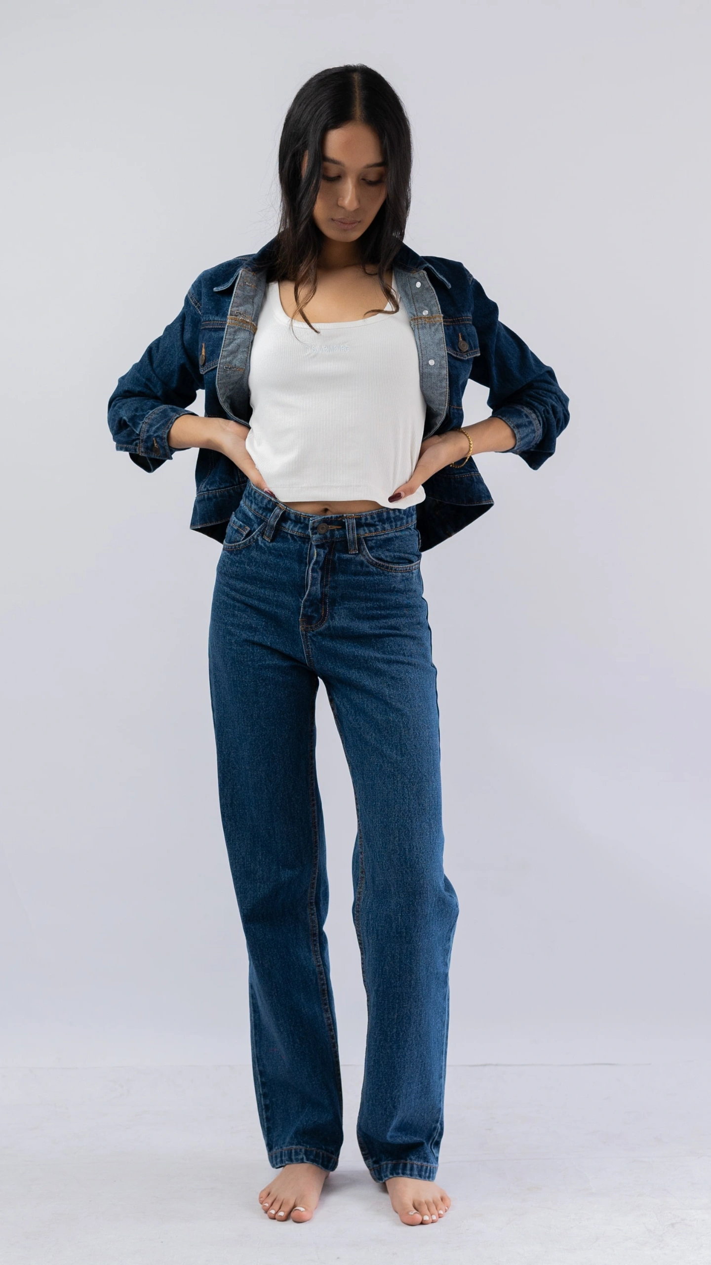 – Color: Timeless dark wash