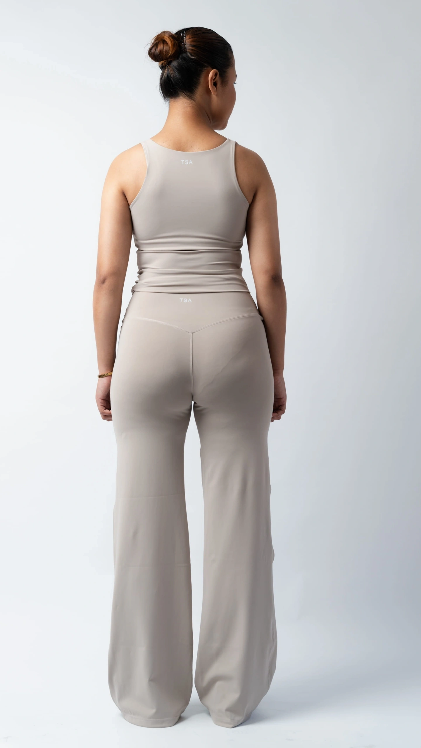 Designed to combine performance with style, the Flare Leggings feature a high-rise waist and elegant flared hem for a flattering silhouette. The stretchable spandex fabric hugs the body comfortably while allowing unrestricted movement.